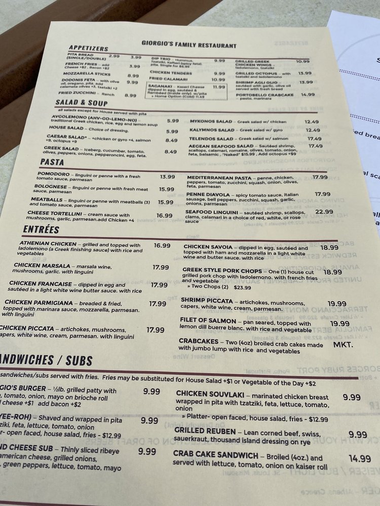 Giorgio’s Family Restaurant, located in Dumfries, VA, offers a diverse menu with options for every palate. From Braised Beef Short Ribs to Pan Seared Halibut, the special entrees are a must-try. Customers rave about the Greek salad and seafood linguine, highlighting the quality and flavor of the dishes. The ambiance is cozy and welcoming, making diners feel right at home. With excellent customer service and a good wine selection, Giorgio’s is the perfect spot for a delicious meal with friends and family. Don't miss out on their Greek and Italian cuisine, as well as the occasional specials that add variety to the menu. Overall, Giorgio’s Family Restaurant consistently delivers delicious food and a pleasant dining experience.